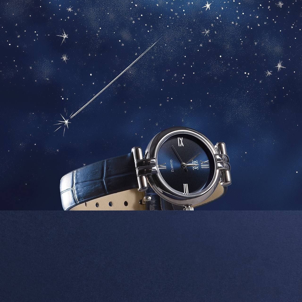 ▪️ ساعت زنانه با صفحه آبی و قاب نقرهای